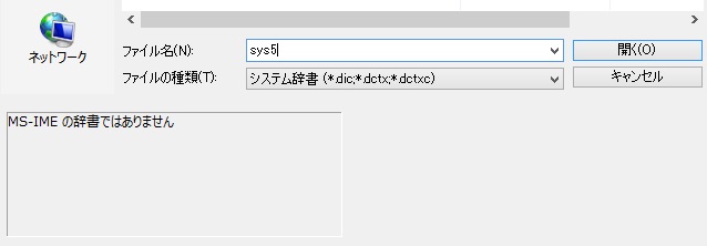 ファイルの種類がシステム辞書となっているにも関わらず、
