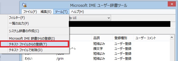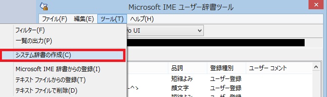 以下の手順で、自PCのユーザー辞書に登録したものが