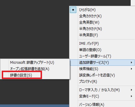 でっあとは、追加辞書サービス>追加辞書設定画面から