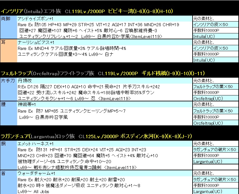 ユニティ:ウォンテッド NM別 の戦利品(装備類)