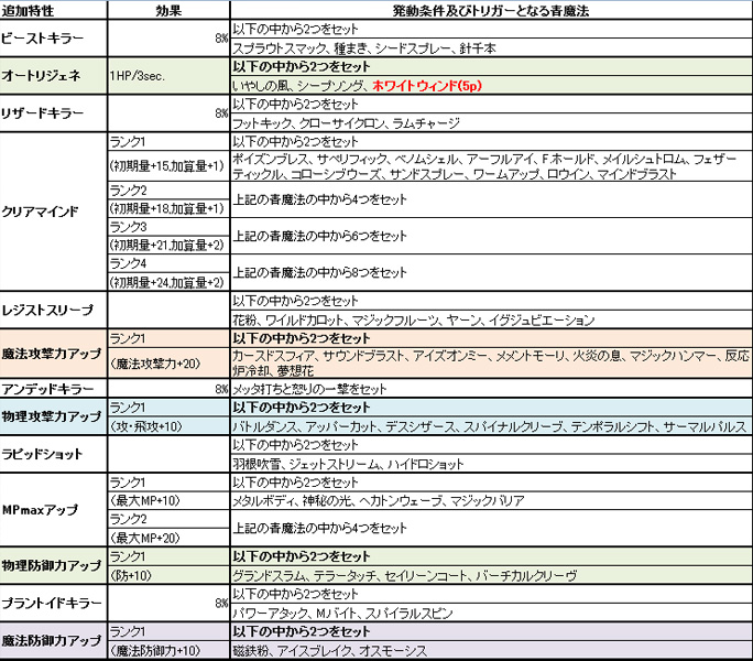 (新青魔法込みの 追加特性の表は