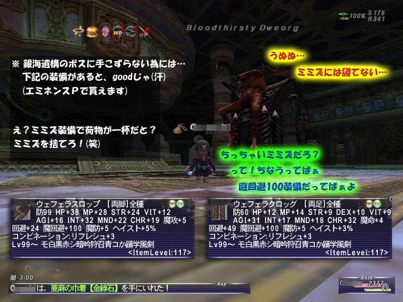 (装備は、メインシーフの方に、到底及ばないものです。)